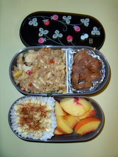 Since I'm on a roll with the healthy food let me say I'm glad I don't have daiabities, however the symptoms of my PCOS have been steadily disappearing as I lose weight. My current weight right now is 207 lbs, seven more pounds to lose and I'm at an ideal weight so says the doctor. Having PCOS is what spurred me to start making bentos, this way I can tweak my lunches, dinners, or even breakfest the way I need to. I give thanks to the bento and Japan for giving me inspiriation to lose weight, I'm also giving a hearty thanks to Biggie cause she's been a big help and inspiriation too.